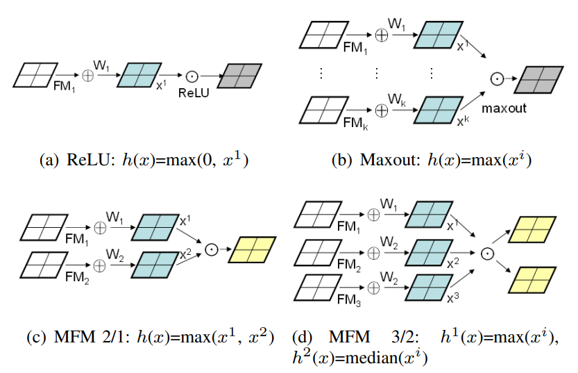 - LightCNN은 각 합성곱 층에 Max-Feature-Map(MFM)이라는 변형된 Maxout Activation을 도입.