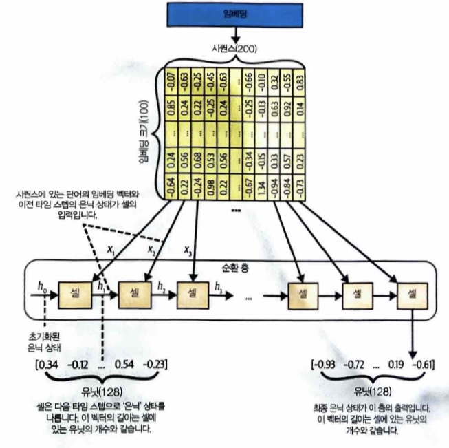 - 순차 데이터를 처리하는 순환 층(셀).