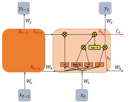 - 은닉 상태 h_t를 만드는 과정. 즉, 셀의 출력.