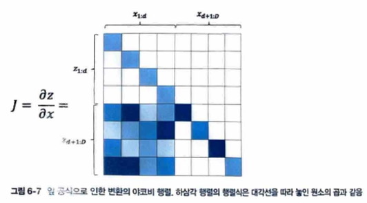 - 또한 역변환 가능하고 야코비 행렬을 쉽게 계산.