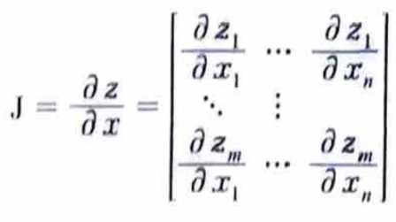 - 함수 z = f(x) 의 야코비 행렬은 다음과 같은 1계 편도함수의 행렬.