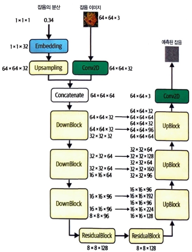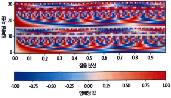 - 신경망 후속층에서 사용할 수 있도록 스칼라 값(잡음의 분산)을 더 복잡한 고차원 벡터로.