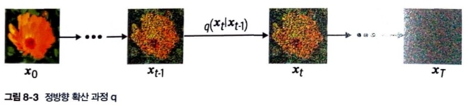 * 단위 분산 : 추가되는 잡음의 변동 폭이 일정해 모든 단계에서 동일하게 유지.